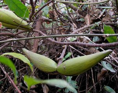羊角拗的果期,约在每年的6月至翌年2月。羊角拗的果实是蓇葖果,果形极似一对羊角,故得其名。在其果期,若在野外发现一对羊角形的果实,再加上是藤本植物和枝条具灰白色皮孔,那可能就是羊角拗了。