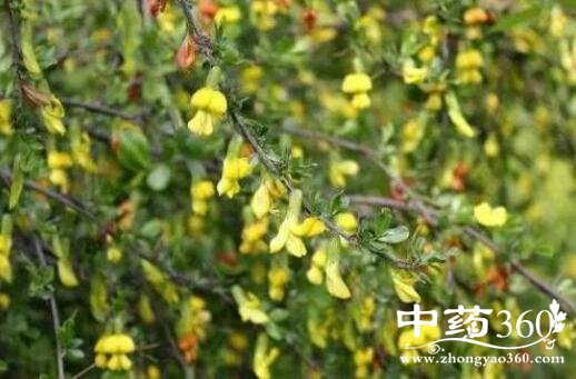 【原形态】落叶灌木,高1~2米;多分枝,外皮灰褐色。托叶三角形或卵状披针形;长枝上的叶轴宿存并硬化成针刺,长2~5厘米,短枝上的叶轴脱落;羽状复叶,小叶10~14片,长圆形或倒卵状披针形,长约7~9毫米,宽3~3.5毫米,先端有短硬尖,下面被短柔毛。花单生;花梗中部有节;花萼阔圆筒状,基部一侧偏斜呈囊状,萼齿三角形,与萼简近等长;花冠黄色,旗瓣近圆形,先端圆。荚果圆筒状,长30~45毫米,外面密被柔毛。