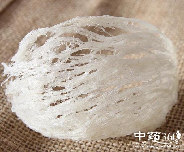 燕窝含有蛋白质、精氨酸、组氨酸、赖氨酸等多种氨基酸、氨基己糖以及钙、磷、钾、硫等成分,为高级滋补佳品,性平,味甘,入肺、脾、肾经,具有养阴润燥、益气补中的功效。《本草从新》载:“燕窝大养肺阴,化痰止咳,补而能清,为调理虚劳之圣药,一切病之由于肺虚,不能清肃下行者,用此皆可治之。开胃气,已痨痢,益小儿痘疹。”《食物宜忌》中亦载:“(燕窝)壮阳益气,和中开胃,添精补髓,润肺,止久泻,消痰涎。”