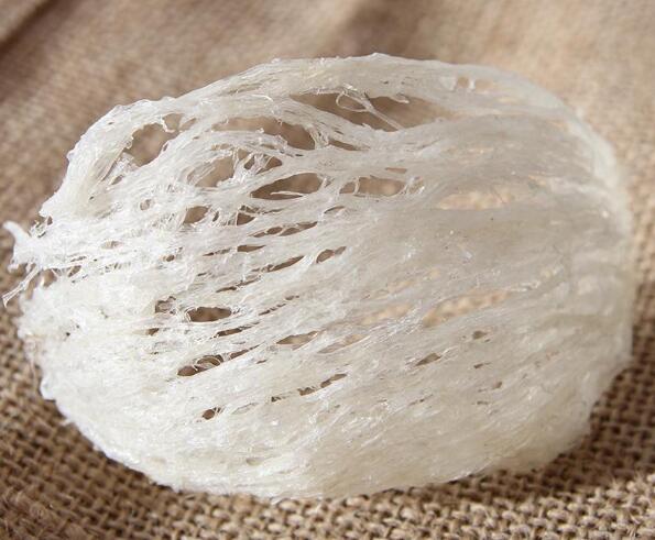 一看,燕窝应该为丝状结构,由片块结构构成的不是真燕窝;纯正的燕窝无论在浸透后或在灯光下观看,都不完全透明,而是半透明状。