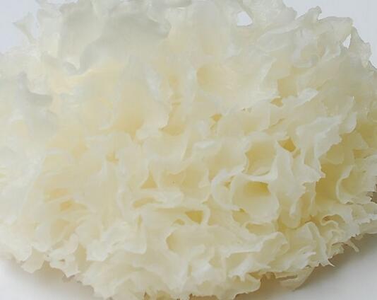 银耳为真菌植物门真菌银耳的子实体,银耳是由许多薄而多皱褶的扁平形瓣片组成,一般呈菊花状或鸡冠状,直径5~10厘米,柔软洁白,半透明,富有弹性。银耳含有较多的胶质,能吸收大量水分,干燥后强烈收呈角质状,硬而脆,呈白色或米黄色,当它吸水后又能恢复原状。