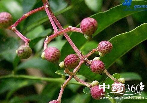 【原形态】常绿灌木或乔木,高可达12米。干和枝具红褐色的皮刺。叶互生;单数羽状复叶,小叶7—23枚:总轴长7—12厘米,有少刺或无刺;小叶斜方状倒卵形或斜矩圆形,长2—5厘米,宽1—2厘米,顶生小叶矩圆形,长可达7厘米,先端钝,基部狭而成一短柄,边全缘稍作波浪形;或中部以上有不明显的浅圆锯齿。圆锥花序顶生,疏散的3歧,或2—3次伞形花序式的分枝,约与叶等长;花序柄长5—9厘米;花单性,萼片5,卵形;花瓣5,白色,长约2毫米;雄花的雄蕊5,退化心皮短小;雌花的雄蕊退化为鳞片,心皮2,柱头头状。蓇葖果紫红色,有粗大腺点。种子黑色而亮。花期6—8月。果期9—10月。
