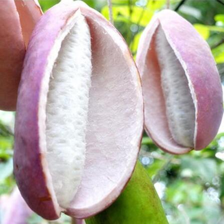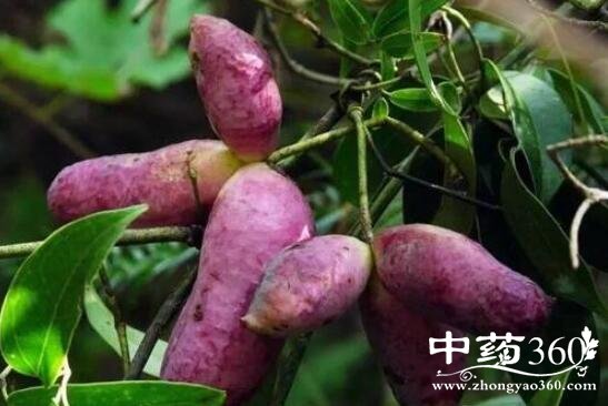 【药用部位】木通科植物木通Akebia quinata (Thunb.) Decne.、三叶木通Akebia trifoliata(Thunb.)Koidz.或白木通Akebia trifoliata(Thlmb.)Koidz.var.austalis(Diels)Rehd.的近成熟果实。(本文以木通为例,右图亦为木通)