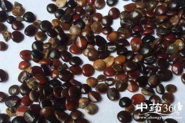 【药材性状】扁平圆形,背面稍隆起,腹面较平,直径3~5毫米,厚约2毫米。表面红棕色至红褐色,平滑光泽,基部有椭圆形点状的种脐,顶端有微凸的合点,腹面有一条纵行而隆起的种脊。种皮坚硬,厚约1毫米,胚乳乳白色,油质,其内包围有2片肥厚的子叶,呈淡黄色至草绿色,亦油质。气微弱,味苦而涩。