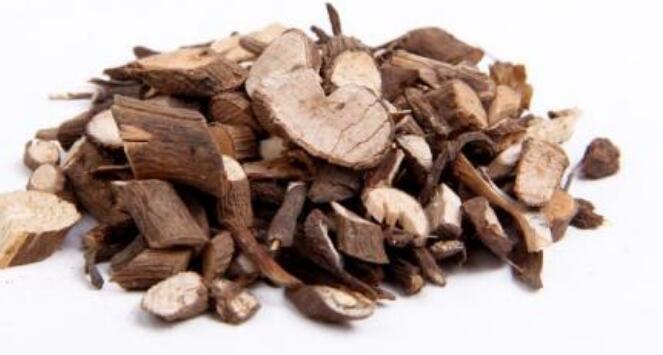 【药材性状】根茎略膨大。根丛生,支根呈圆柱形,稍弯曲,长短不一,直径2~10毫米;表面暗棕色或暗褐色,具纵皱及横向断裂痕;质硬而脆,断面皮层易与木质部区分,皮部厚,占横面的1/2~ 2/3,类白色或粉红色,有散在的“朱砂点”,木部淡黄色。气微,味微苦辛。