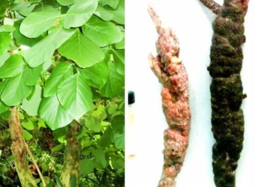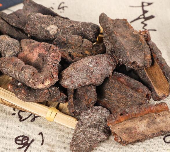 【生药材鉴定】呈半圆柱状,长短宽狭不一,长3~10厘米,宽1~1.5厘米。紫褐色或紫红色,表面凹凸不平,有皱纹及小虫眼孔隙,附着于树枝处呈凹沟状,边缘钝圆。质硬而脆,可折断。断面有平行排列的长圆形或圆形虫窝,内有长卵形或圆形虫尸,褐色或暗红色。气微臭,味淡。遇热则软化而粘。以块大、色紫、质坚者为佳。