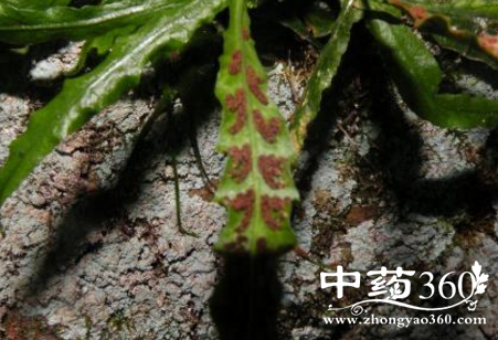 原形态植株高8-18cm。根茎细长,横生,密被褐棕色、披针形鳞片。叶近生,具短柄;叶片肉质,线状披针形,长5-17cm, 中部宽1-1.2cm,先端锐尖,基部楔形并下延至叶柄底部,全缘或微波状,干后革质,上面有皱纹;中脉两面稍隆起。孢子囊群长圆形,通常5-8对,彼此分开,极斜向上,有时与中脉几平行,排列于中脉两侧,生长于背面中部以上,下部不育;无囊群盖。