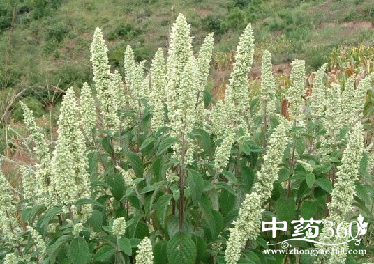 【原形态】直立灌木,高0.5~1.5米。茎灰褐色,外皮有不规则裂纹,多分枝,分枝向上升,枝条黄褐色,有细条纹,具粉白色短柔毛。单叶对生;具长柄;椭圆形或菱状椭圆形,长1~3厘米,宽0.6~2厘米,先端锐尖,基部宽楔形,上面绿色,多皱纹,下面白绿色,密被平贴白短柔毛。花淡紫色或白色,小,紧密排成顶生假穗状花序。小坚果卵圆形,长不超过1毫米。花期夏季。