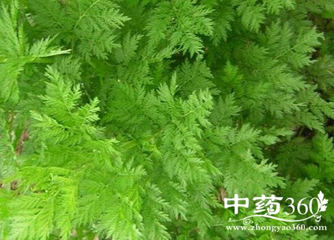 2、将青蒿的老叶以及根部全部去掉,折成段状,在清水下洗干净,沥干水分备用。