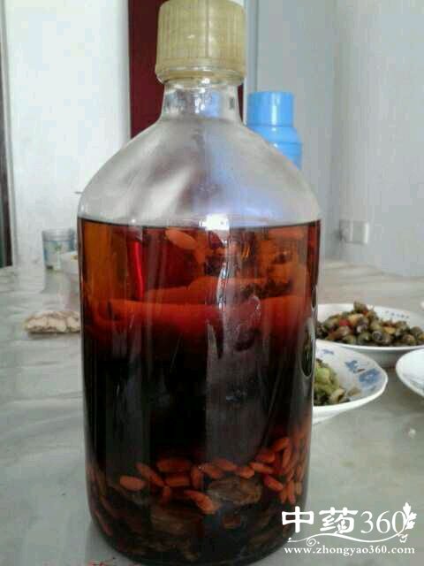 制法:先将以上15味药,除白酒外,混匀,再加入白酒密封浸渍,夏、秋45天,春、冬60天,滤取上清液,将药渣压榨,榨出液与浸液合并,静置4天,滤过即得。