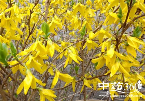 另外,迎春花的小枝是绿色的,而连翘的小枝颜色较深,一般为浅褐色。而且,迎春花很少结实,连翘结实。连翘不仅可以远观近看与亵玩,而且它的果壳可以入药。《神农本草经》上记载:连翘主寒热,鼠痿,瘰疬,痈肿恶疮,瘿瘤,结热。“羚翘解毒丸”的“翘”指的就是连翘。