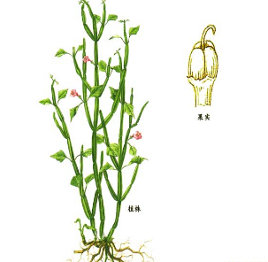 【性状】干燥全草,长30~40厘米。根棕红色,短小。茎四棱形,棱边突起,节长3~4厘米,节疤明显,表面枯绿色或绿褐色,质柔脆,易折断,髓心白色,松泡如灯芯草。叶多脱落。气微。