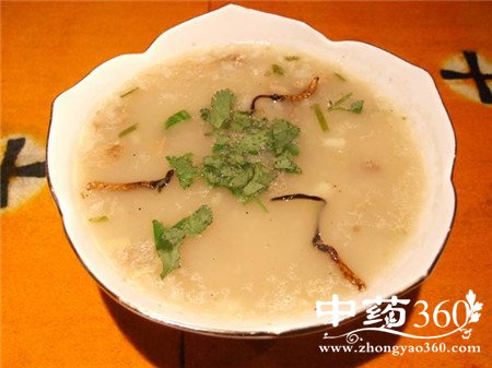 做法:冬虫夏草洗净,瘦猪肉洗净切成肉末,淮山洗净,与淘洗干净的粳米一同放入砂锅,加适量水熬煮成粥。