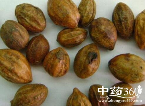1.诃子:果实呈卵形或椭圆形,长2.4cm,直径2~2.5cm。表面棕褐色,被棕色细密绒毛(绒毛诃子)或无(诃子),略具光泽,有5~6条纵菱形及不规则的皱纹,在纵棱线之间有1~2条明显或不明显的纵凸起,可见细密横向纹理,基部有圆形果柄痕。质坚实,剖开后,果肉厚2~4mm,黄棕色或黄褐色。果核长l.5~2.5cm,浅黄色,粗糙,坚硬、种子一粒,狭长纺锤形,长约1cm,直径2~4mm,膜质种皮黄棕色,子叶2,白色,相互重叠卷旋。无臭,味酸涩而后甜。