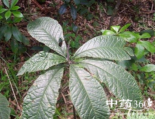 【原形态】大灌木,高约1-3m。具粗厚的匍匐根茎;茎粗壮,通常无分枝,幼嫩部分被微柔毛。叶通常簇生于茎顶端;叶柄长2-4cm,具波状狭翅;叶片膜质,椭圆形至倒卵状披针形,长25-48cm,宽9-17cm,先端钝急尖或近渐监,基部楔形,下延至叶柄,边缘具密啮蚀状细齿,齿具小尖头,背面叶脉上被细微柔毛,具疏眼点,以近边缘较多,不成边缘脉。由多个亚伞形花序组成的大型金字塔状或总状圆锥花序,长20-35cm,宽约10cm或更宽,每亚伞形花序有花9-15朵;花梗长1-1.5cm;萼片狭三角状卵形或披外形,长1.5-2mm,被疏微柔毛,具腺点,缘毛不明显;花瓣白色或粉红色,卵形,长4-5mm,具疏腺点;雄蕊为花瓣长的2/3,花药卵形;雌蕊与花瓣几等长,子房被微柔毛。果球形,直径约6mm,红色,具纵胁,多少具腺点。花期4-6月,有时2-3月,果期11-12月,有时2-6月。