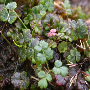 【原形态】高山唐松草,多年生小草本。全株无毛。叶4-5片或更多,均基生,为二回羽状三出复叶;叶柄长1.5-3.5cm;叶片长1.5-4cm,小叶薄革质,有短柄或无柄,圆菱形、菱状宽倒卵形或倒卵形,长和宽均为3-5mm,基部圆形或宽楔形,3浅裂,浅裂片全缘,脉不明显。花葶1-2条,高6-20cm,不分枝;总状花序长2.2-9cm;包片小,狭卵形;花梗向下弯曲;萼片4,绿白色,椭圆形,易脱落;雄蕊7-10,花药狭长圆形,先端有短尖头,花丝丝形;心皮3-5,柱头箭头状。瘦果狭椭圆形,稍扁,有8条粗纵肋。花期6-7月,果期8月。