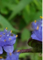 【原形态】蛛丝毛蓝耳草,多年生草本,高15-80cm。全株被丝状白色绵毛。根数条,直径1-2cm,稍肉质。基生叶丛生,无柄;叶片带状,长8-20cm,宽7-10cm;茎生叶互生;长卵形,长2-3cm,先端渐尖或钝,基部下延成明显的膜质叶鞘,全缘。聚伞花序顶生或腋生,集成头状花序,稀单生,无梗或具短梗;苞片大,叶状,小苞片折叠,镰刀状弯曲,长5-10mm,宽3-4mm;萼片3,长约5mm,花蓝紫色,长约7mm,中部连合成筒,两端分离,上部有裂片;雄蕊6,全育,花丝被珠丝状长绒毛;子房3室,先端簇生长刚毛。蒴果倒卵状三棱形,长约3mm。种子小,先端有窝孔。花期7-8月。