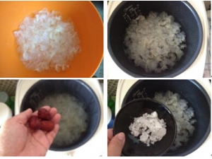 龙眼肉500克(鲜品更佳),白糖50克,将龙眼肉放碗中,加白糖,反覆蒸、晾3次,使色泽变黑,装瓶备用。每天服两次,每次4-5枚。适用于心脾两虚型。