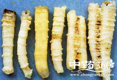 性状性状鉴别 呈圆柱形或圆锥形,中空如和状,长3-7cm,直径0.5-1.3cm,管壁厚1-4cm。白色、淡黄白色。表面平滑,有的较粗糙,有颗粒或纵斜纹理。半透明至不透明。质硬脆,可折断,断面白色,具玻璃光泽,中心具较大空洞,壁厚者可见浅黄色环层。无臭,味淡。