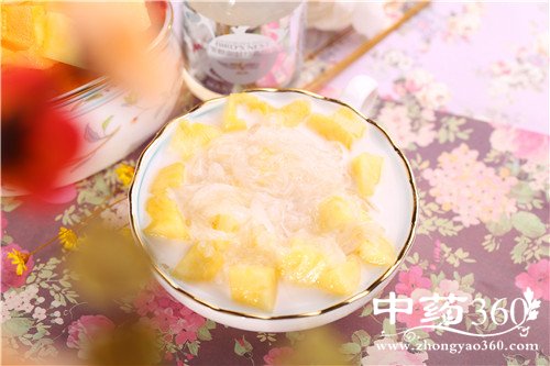 燕窝含有蛋白质、精氨酸、组氨酸、赖氨酸等多种氨基酸、氨基己糖以及钙、磷、钾、硫等成分,为高级滋补佳品,性平,味甘,入肺、脾、肾经,具有养阴润燥、益气补中的功效。《本草从新》载:“燕窝大养肺阴,化痰止咳,补而能清,为调理虚劳之圣药,一切病之由于肺虚,不能清肃下行者,用此皆可治之。开胃气,已痨痢,益小儿痘疹。”《食物宜忌》中亦载:“(燕窝)壮阳益气,和中开胃,添精补髓,润肺,止久泻,消痰涎。”