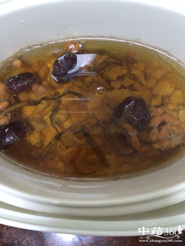 汤方分析:冬虫草味甘性温,能补肺肾,止咳嗽;水鱼味性平,能益气补虚,滋阴养血。