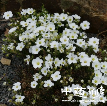 【原形态】多年生草本,高2-10cm。茎簇生,下部具柔毛,上部具黑色腺柔毛。茎下部的叶鳞片状,长3-4mm,宽1-1.5mm;茎上部的叶卵状长圆形或长圆状披针形,长0.5-1.5cm,宽1.5-5mm,先端急尖,边缘近先端具稍硬柔毛,基部狭窄,中肋显着。聚伞花序,1-3花;花梗长0.5-1.5cm,密被黑色腺柔毛;萼片5,长圆状披针形,长5-8mm,宽2-3mm,先端急尖,边缘狭膜质,2轮,内轮仅背面中部被黑色腺柔毛,而外轮则背面和边缘均被黑色腺柔毛;花瓣5,倒卵形,长0.7-1cm,宽约4mm,先端微凹,基部渐狭成爪,白色;雄蕊10,花丝扁,纤细,长5-6mm,花药黑紫色;子房椭圆形,具柄,长约2mm,含6-8(-13)枚胚珠,花柱2,长2.5mm。花期7-8月。