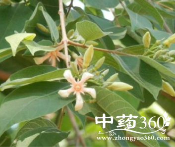 【原形态】乔木,高约5~12米,有乳汁。叶对生;卵形至矩圆状卵形,长8~12厘米,先端渐尖,基部阔楔形,两面均被柔毛。聚伞花序长5~8厘米;萼5裂,里面有腺体;花冠粉红而带白或白色,高脚碟形,管田柱形,短,裂片5,矩圆形,长约1.5厘米,鳞片与花冠裂片对生的长约8毫米,3裂,与裂片互生的长约6毫米,2裂;雄蕊着生于花冠管之顶,突出,围绕花柱;心皮2,花柱线形。蓇葖圆柱形,长10~20厘米,直径1~1.5厘米。种子线形,有丰富的白色种毛。花期6月。