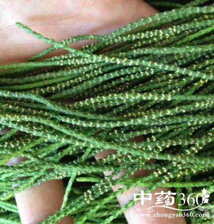 【药材】干燥全草青绿色,细长,多分枝,质柔软光滑,略有光亮,鳞叶排列紧密,不刺手,多无根部;如有根部残留,则可见黄白色或灰白色的绵毛。以青色、干爽、长条者为佳。