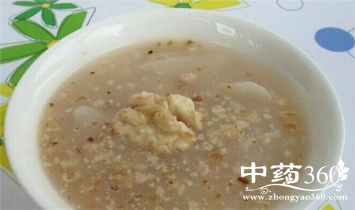 白茯苓20克,粳米50克。白茯苓研为细粉,与粳米煮粥,每日早晚,温热食服。