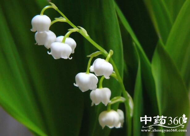 1.强心, 铃兰叶、茎或全草浸液,全草的醇提取液皆有洋地黄样作用,对冷血及温血动物均能加强。心肌收缩力,对衰竭心脏作用更显著;它能减慢心率,抑制传导,表现强心甙的作用特点。其浸剂容易水解,因而影响保存及效价的稳定,口服效力不佳,为其缺点。药用其全草,所含有效成分强心甙因采收季节、处理方法不同而有显著变化。根的强心甙含量在果实形成期最高,在现叶期和叶片开张期含量也多;叶、叶柄、花葶及花等部分在花蕾形成期和始花期含量最高(比果实形成期含量更高);种子则在黄果期和红果期含量最高。果实与种子的含量相似。