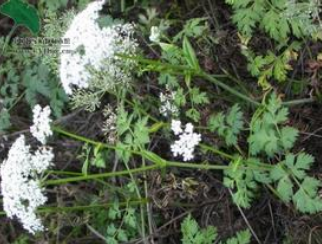 【植物形态】多年生草本,高约1米。根茎呈不规则的团块,有多数须根。茎直立,中空,表面有纵棱。基生叶三角形,2回奇数羽状全裂,最终裂片3~4对,卵形,上面沿脉有乳头状突起,边缘有不整齐羽状深裂;茎上部叶具扩展叶鞘。复伞形花序顶生,具乳头状粗毛;总苞片和小总苞片线形或分裂;伞幅15~22,不等长;花梗20;花小,白色。双悬果宽卵形,无毛,分果具5棱。花期7~8月,果期9~11月。