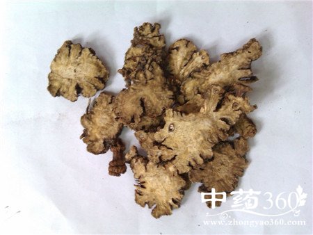川芎性状鉴别:根茎为不规则结节状拳形团块,直径1.5-7cm。表面黄褐色至黄棕色,粗糙皱缩,有多数平行隆起的轮节;顶端有类圆形凹窝状茎痕,下侧及轮节上有多数细小的瘤状根痕。质坚实,不易折断,断面黄白色或灰黄,具波状环纹形成层,全体散有黄棕色油点。香气浓郁而特残,味苦,辛,微回甜,有麻舌感。以个大饱满、质坚实、断面色黄白、油性大、香气浓者为佳。