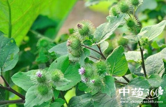 头风白屑。用牛蒡叶捣汁,熬浓涂头上。第二天早晨,以皂荚水洗去。