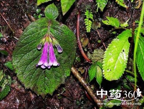 【来源】为苦苣苔科植物大一面锣的全草或根。原植物系大一面锣Didissandva ssaquifolia CB Clarke多年生草本,密被淡黄色粗毛。根茎木质化,具不定根。茎直立,高15—33厘米。叶1片,直立,生于茎之顶端,几无柄;叶片广卵状椭圆形,长达22厘米,宽约12.5厘米,有时具l—2片鳞片状的小叶,亦着生茎端,长2厘米许,宽近2厘米,先端尖,边缘有大小不等的锯齿,基部心脏形或圆形。花排列成伞形花序或单生于茎顶。花梗长约2厘米;花萼5裂,裂片长椭圆形,先端尖,长12毫米;花冠下部结合成管状,长4厘米,先端2唇形,管内有毛2列,雄蕊4,花粉散出后花丝卷曲,将花药拉入冠管内。生长林边湿润的碱性土壤中。春、夏两季采收全草。鲜用或晒干用。