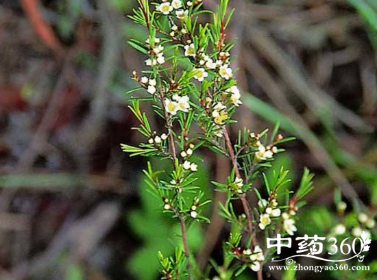 岗松为桃金娘科植物岗松的全草或根。灌木或小乔木。嫩枝纤细,多分枝。叶小,对生;无柄,或有短柄;叶片狭线形或线形,洗端尖,上面有沟,下面突起,有透明油腺点,无侧脉。