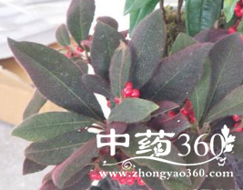 【植物形态】常绿小灌木。根茎呈念珠状,膨大,粗壮。叶通常集于枝端,纸质,叶片长椭圆形或长圆状披针形,先端渐尖,基部渐狭成一短柄,边缘有细锯齿,下面红色。圆锥花序顶生;花淡紫色,萼片5裂片近三角形,花冠5深裂,裂片卵形至广卵圆形;雄蕊着生于花冠管的基部;子房上位,花柱线形,浆果圆形,熟时红色,具细长的果柄。花期4~7月,果期10~12月。
