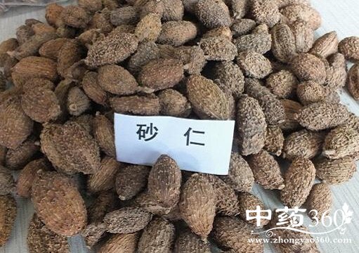 【药物配伍】:配蔻仁,宣通三焦气机,芳香化浊,醒脾和胃,行气止痛,俱能治湿浊内蕴,胃呆纳少,气滞胸闷,脘腹胀痛,反胃呕吐等证。配青陈皮,理气止泻,治脾胃气滞,胸腹胀满,消化不良,湿阻脾胃之泄泻,痢疾。配佩兰,芳香悦脾,可用治湿阻气郁,恶心呕吐,食欲不振,胸腹胀满,治胎动不安等证。配冬葵,行气下乳,可治乳少气滞胀满疼痛等证。配熟地,砂仁既免除熟地滋腻碍胃之弊,又可引熟地归肾。配黄芩,寒温相合,气血配对,用于胎热上冲所致的胎动不安。配木香,用治脘腹气滞胀痛,消化不良,加强行气止痛之功。