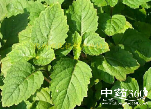 【植物形态】 多年生草本或灌木,高30~100cm,揉之有香气。茎直立,上部多分枝,老枝粗壮,近圆形;幼枝方形,密被灰黄色柔毛。叶对生,圆形至宽卵形,长2~10cm,宽2.5~7cm,先端短尖或钝,基部楔形或心形,边缘有粗钝齿或有时分裂,两面均被毛,脉上尤多;叶柄长1~6cm,有毛。轮伞花序密集成假穗状花序,密被短柔毛;花萼筒状,5齿;花冠紫色,4裂,前裂片向前伸;雄蕊4,花丝中部有长须毛,花药1室。小坚果近球形,稍压扁。我国栽培的稀见开花。