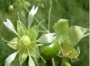 【原形态】多年生匍匐蔓生草本,长60-90cm。全株密被白色星状柔毛。茎基部匍匐,上部半直立,灰绿色,质脆易断,分枝稀疏,节膨大,有不定根。单叶互生;叶柄极短而近于无柄;叶片卵状椭圆形或狭卵形,长2-3.5cm,宽8-12mm,先端渐尖,基部心形或微抱茎,全缘,两面被白色星状毛,下面较密。二歧聚伞花序细弱,有细长总花梗,生于叶腋或2分枝叉间;花梗细,长短不等;苞片较小;萼片5,披针形,长约4mm,外面被星状柔毛;花瓣5,白色,稍短于萼,2深裂至基部;雄蕊10;子房上位,花柱3-4。蒴果长卵形,与宿萼等长。种子多数,近黑色,有瘤状突起。花期4-7月,果期7-8月。