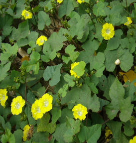 多年生草本,茎直立,分枝,被粘毛,揉之有腐败气味,高0.3~1米。叶互生,阔卵状心形,长3厘米,先端渐尖,边缘有钝齿;上部的叶通常呈矩圆形至矩圆状卵形,两面均被粘质星状疏长毛;叶柄长1~4厘米;托叶刚毛状。花腋生,单生建成对,或数朵聚生于腋生的短小枝上,成一具叶的假总状花序;花柄纤弱,近中部有节;萼绿色,5裂,被疏长毛;花冠黄色,径约1厘米,上部分离,下部连合与雄蕊管合生;雄蕊多数;心皮5枚,长约2.5毫米,平滑,无网纹,亦无芒。花期冬季。