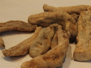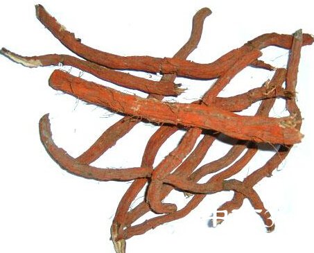 根1至数条,圆柱形或圆锥形,常稍弯曲,并有分枝,长10~20cm,直径0.2~lcm。表面砖红色或棕红色,粗糙,有不规则纵沟或纵皱纹及须根痕;老根栓皮灰褐色或棕褐色,多呈鳞片状剥落,露出棕红色新栓皮,有时皮部开裂,露出白色木部;根头部粗大,有时残留茎基。质硬脆,易折断,折断面角质样或纤维性,皮部暗红棕色,木部导管束黄白色,放射状排列。