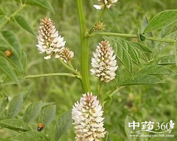 【原形态】多年生草本。茎直立,基部木质化,有条棱,全体被鳞片状黄色腺体。单数羽状复叶;小叶5~13,披针形或宽披针形,长2~5厘米,宽0.5~2厘米,先端渐尖,基部楔形。总状花序腋生;花紧密,长8~10毫米;萼钟状,5裂;花冠蝶形,蓝色。荚果卵形,褐色,长1~1.5厘米,宽0.4~0.5厘米,密生尖刺;种子2颗,黑色。花期6~7月。果期8~9月。