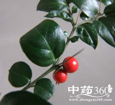 常绿小灌木,高30~70厘米。根粗大分枝,或缢缩呈念珠状,根皮淡黄色。枝条细,灰白色,分枝多,有直刺,长1~2厘米,常对生于叶柄间,黄绿色,小枝有灰黑色细毛。叶对生,卵形或阔椭圆形,长1~2.5厘米,先端凸尖,基部圆形,表面有光泽,革质,全缘;几无柄。花小,白色,1~2朵生于叶腋;萼筒倒卵形,窑存;花冠漏斗状,裂片4;雄蕊4;雌蕊1。核果球形,熟时红色。花期4~5月。果期11~12月。