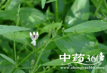 【植物形态】多年生草本。单叶,对生,纸质,叶片卵状、矩圆状披针形。总状花序顶生或腋生,集成大型圆锥花序;裂片三角状披针形;花冠白色而下唇带紫色斑纹,二唇形;雄蕊2枚;子房上位。蒴果扁,有2条纵槽,疏生腺毛,成熟后开裂为2果瓣。种子多数,骨质,多皱纹,秃净,黄色或深褐色。花期8~9月,果期10月。