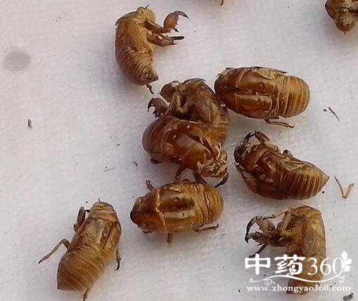 【药用部位】为蝉科昆虫黑蚱羽化后的蜕壳。动物形态详“蚱蝉”条。
