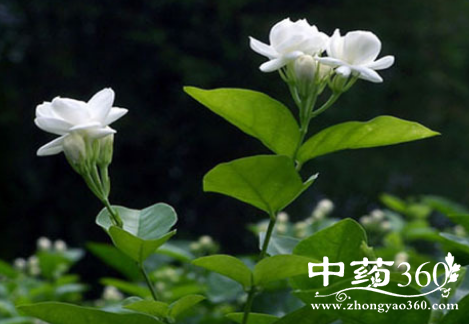 【来源】木犀科茉莉花属植物茉莉Jasminum sambac (L.)Aiton,以根及花入药。秋后挖根,切片晒干;夏秋采花,晒干。