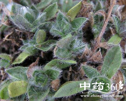 【原形态】多年生草本,高20~30厘米。茎具多数短分枝,被灰色绢毛。基生叶稍呈匙形,长3~6厘米;茎生叶线形,长1~3厘米。总状花序短,长1~2厘米,结果期稍伸长;花小,蓝色;花萼5裂;花冠檐部5裂;雄蕊5;子房4裂,柱头扁球形。小坚果陀螺形,棱缘有短刺,不为锚状,刺通常带蓝色。