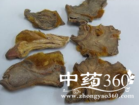 【药材性状】不规则长块状。表面深棕色,残留金黄色茸毛;上面有数个红棕色的木质叶柄,下面残留黑色细根。质坚硬,不易折断。无臭,味淡、微涩。生狗脊片呈不规则长条形或圆形;切面浅棕色,较平滑,近边缘1~4毫米处有1条棕黄色隆起的木质环纹或条纹,边缘不整齐,偶有金黄色茸毛残留;质脆,易折断,有粉性。熟狗脊片呈黑棕色,质坚硬。