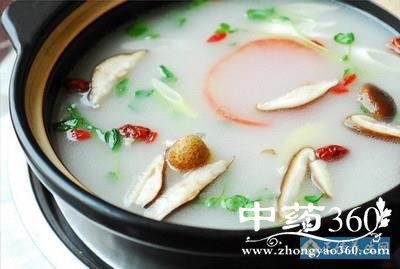此“四物汤”中的黄花菜又名金针,含有丰富的维生素A、纤维素和铁。它具有利水、凉血等功效,可以主治水肿、砂淋、衄血、便血等症,又能健胃、补脾、通便。