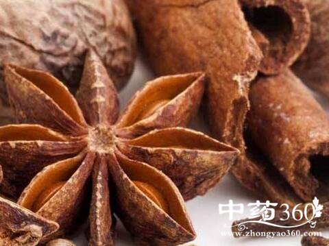 【植物形态】为木兰科植物红茴香或云南茴香的果实。原植物系①红茴香,常绿灌木或小乔木,高可达7米。树干灰色,幼枝绿色。单叶互生,革质。椭圆状披针形或长方披针,长11—17厘米,宽2.5—5厘米,先端尖尾状或锐尖,基部楔形,全缘,叶面深绿色,背面浅绿色;柄长2厘米。花腋生,花梗长2—3厘米,基部具小苞片1对;萼片3,三角状卵形,较小,淡绿色常带红色;花瓣红色,阔卵形或长方卵形,共有18瓣,数轮,愈在内者形愈小;雄蕊多数;心皮多数,一般为8~13个。蓇葵果星芒状排列,木质,紫棕色,先端喙状突出,微上曲,星状体径约2.5—3厘米。种子肾形,坚硬有光泽,黄色或橄榄棕色。花期5月。果熟期9月。生于山地密林中。分布湖北、四川、贵州等地。
